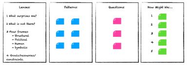 Four frames (inspired by Reframing Organizations: Artistry, Choice, and Leadership, by Lee Bolman & Terrence E. Deal)